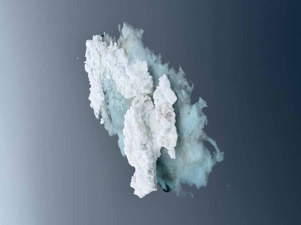 In northern Iceland, the ice floe begins, a mixture of water and ice, translucent and sticky, threatening to trap ships. Mist and wind envelop the whole scene in a glassy and disturbing landscape.